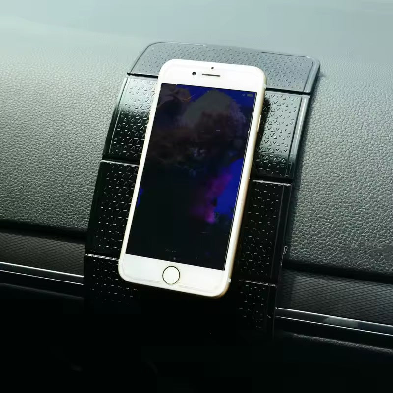 A compact anti-slip phone mat that securely holds your smartphone in place on dashboards or desks, preventing slips and slides without adhesive. Easy to clean and reusable for everyday convenience.